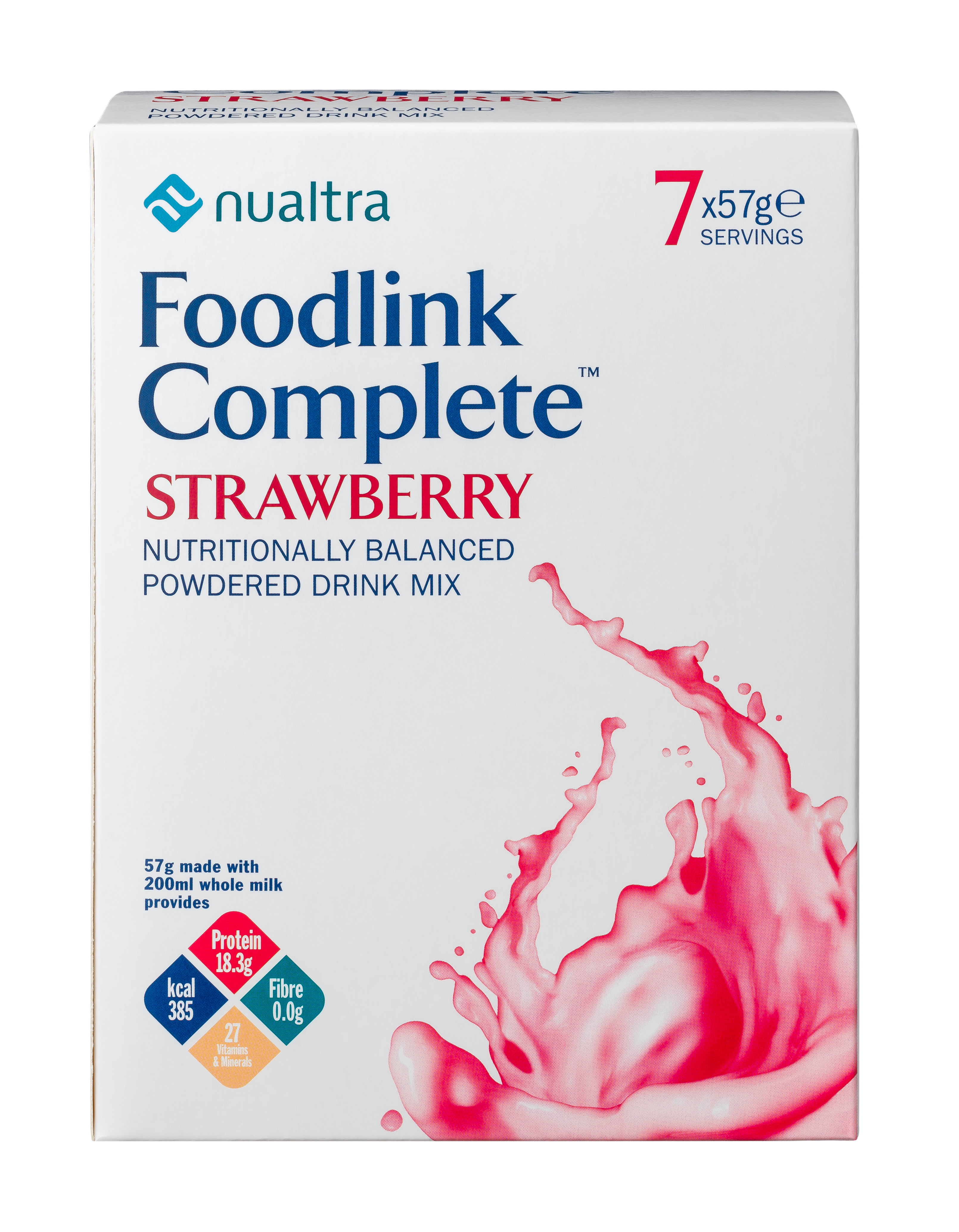 - Add the Foodlink Complete Compact powder to a Nualtra shaker with the milk and shake well.