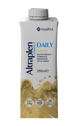 Altraplen Compact Daily is a nutritionally complete, high energy Food for Special Medical Purposes for use under medical supervision. Altraplen Compact Daily is a ready to drink milkshake style oral nutritional supplement containing 600kcals and 24g protein in 250ml.