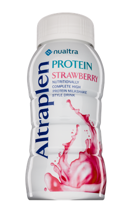 Altraplen Protein is a nutritionally complete, high energy, high protein Food for Special Medical Purposes for use under medical supervision. Altraplen Protein is a 200ml ready to drink milkshake style oral nutritional supplement containing 300kcals and 20g protein. It can be used as a sole source of nutrition or used to supplement a patient’s dietary intake.