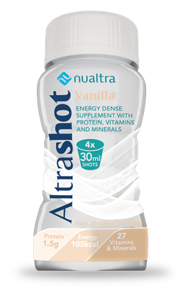 Altrashot is a Food for Special Medical Purposes in a low volume, energy dense liquid supplement with vitamins and minerals. For the dietary management of people with or at risk from disease related malnutrition. Product ready to drink.
