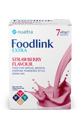 Foodlink Extra is a High Energy Powder Food for Special Medical Purposes for use under medical supervision. The product is an oral nutritional supplement containing 601kcals and 13g protein prepared with 240ml whole milk. Foodlink Extra is designed to supplement a patient’s dietary intake and is not suitable as a sole source of nutrition.